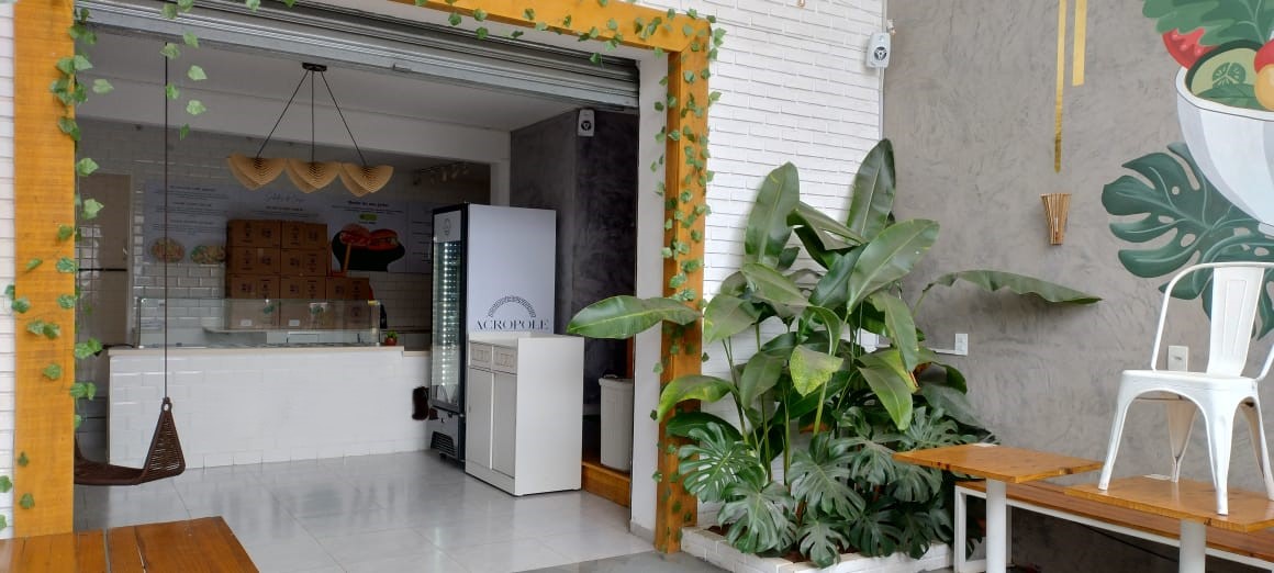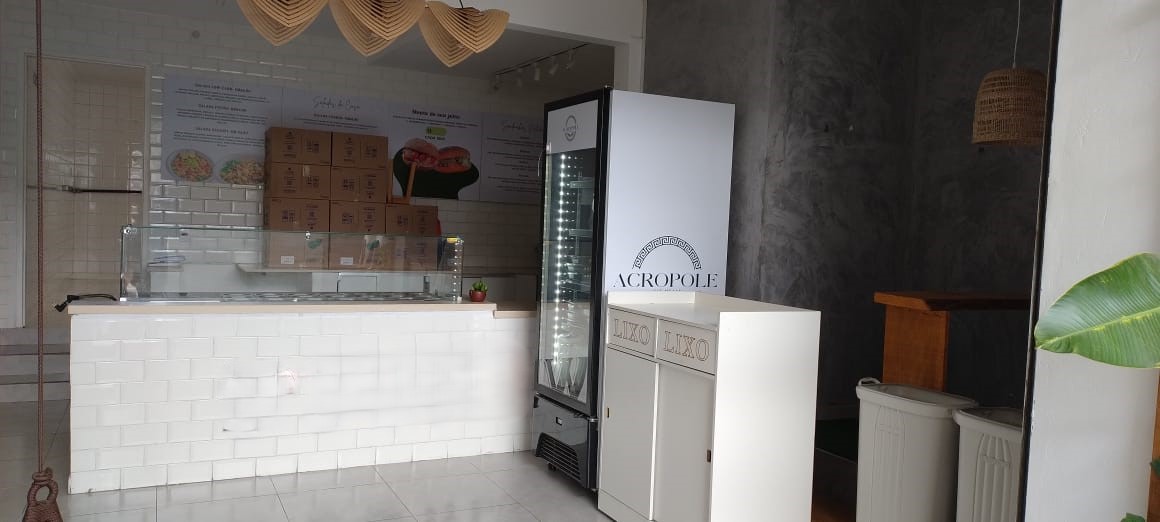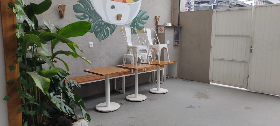 Espaço para mesas, cadeiras e balcão de atendimento